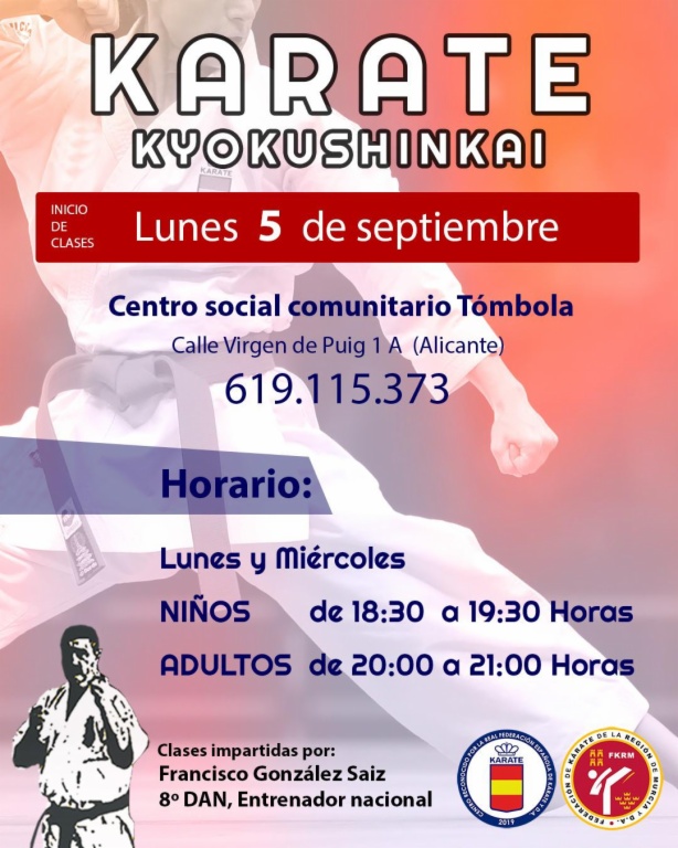El día 5 de septiembre se reanudan las clases de Karate en el Dojo Francisco González en la Asociación de Vecinos Tómbola El Progreso ( Centro de mayores Tómbola).